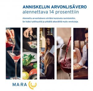Alennettu arvonlisävero siirtäisi kulutusta ravintoloihin, lisäisi työllisyyttä 2 400 työpaikalla ja kansantalouden tuotosta 300 miljoonalla eurolla.