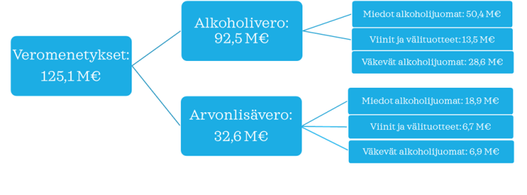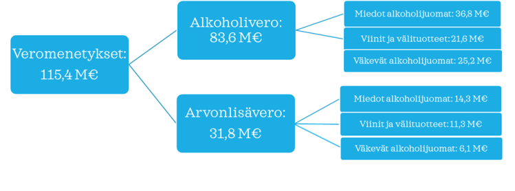 Kuva 2. Ulkomailta verkosta Suomeen ostettujen alkoholijuomien veromenetykset