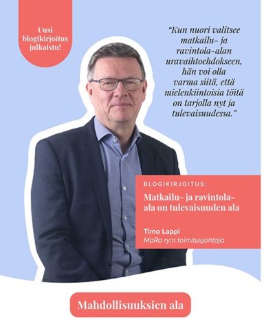 Moni nuori miettii, mihin suunnata peruskoulun tai lukion jälkeen. Erityisesti tekoälyn nopea kehitys muuttaa ammatteja – osa ammateista katoaa ja uusia syntyy tilalle. Nuoren on vaikea ennakoida, mitkä toimialat ovat tulevaisuuden aloja. Matkailu- ja ravintola-ala on sellainen, koska se perustuu ihmisten kohtaamiseen ja heidän yksilöllisten tarpeidensa huomioon ottamiseen.