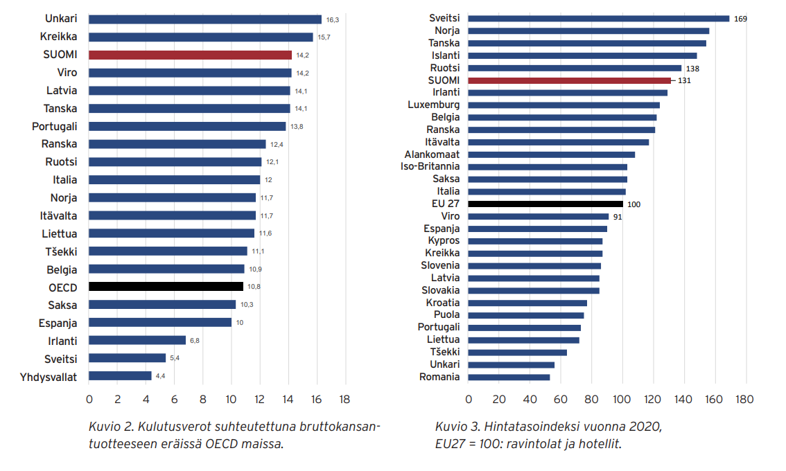 Kulutuksen verotus Suomessa on eurooppalaisessa vertailussa kireää. Kulutusverojen suhde bruttokansantuotteeseen on Suomessa OECD-maiden kolmanneksi korkein (kuvio 2). Alkoholin anniskelua lukuun ottamatta lähes kaikki matkailu-, ravintola- ja tapahtuma-alan palvelut ovat joko 10 tai 14 prosentin alennetuissa arvonlisäverokannoissa.