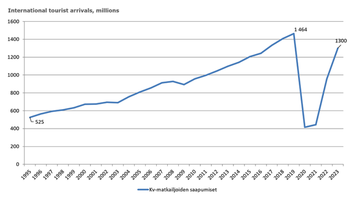 Vuonna 2024 kansainväliset matkailijamäärät koko maailmassa (1,47 miljardia) ylsivät pandemiaa edeltäneelle tasolle.