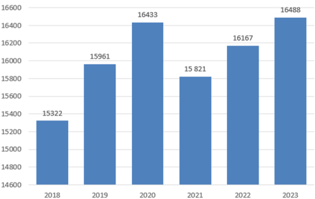 Ravintolat (56 ravitsemistoiminta): toimipaikkojen lukumäärä 2018–2023